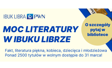 Z okazji tygodnia e-książki zespół IBUKa Libry udostępnił na swojej platformie dodatkowe tytuły z kategorii m.in. literatura faktu, literatura piękna. Tytuły będą dostępne do końca marca br.